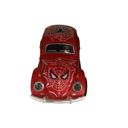 Carrinho de ferro - modelo Fusca do personagem Homem Aranha (com o rosto no Capô), cor vermelho.