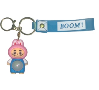 Chaveiro 3D - Personagens - Labubu Piscante, Cabeça Rosa e Corpo Azul