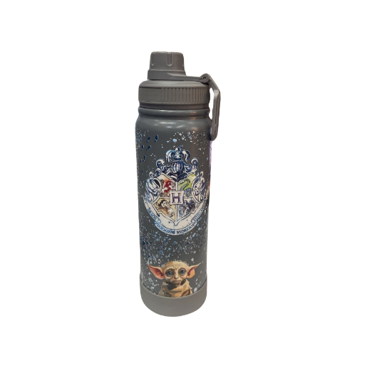 Garrafa térmica Harry Potter, com fundo cinza, modelo 1 (conforme foto) - 800ml.